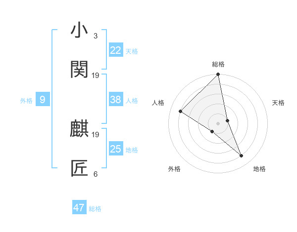 小関 麒匠さんを姓名の画数から五運を鑑定