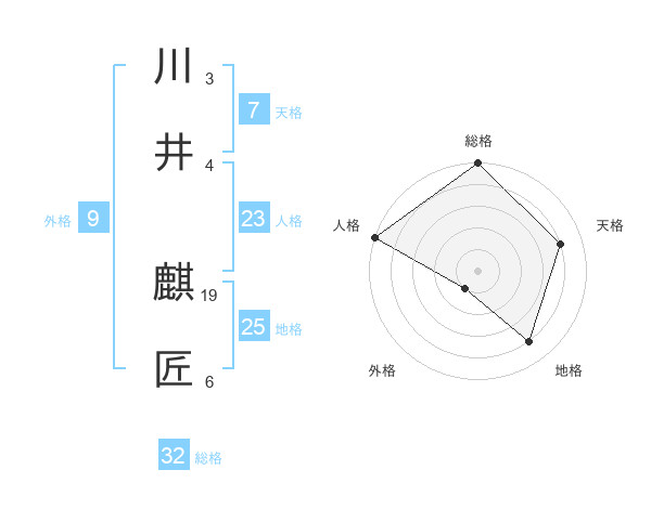 川井 麒匠さんの総格は32画の5点!