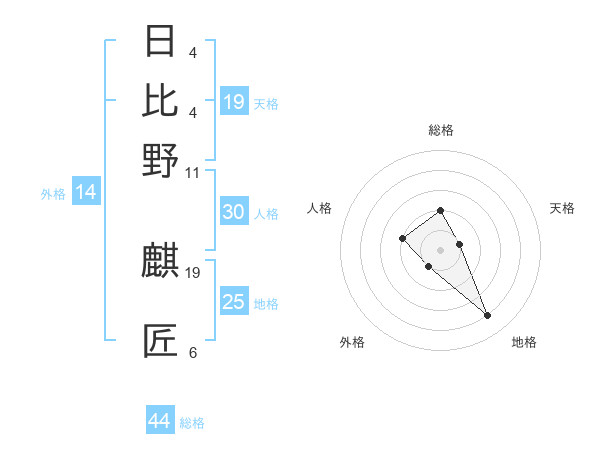 日比野 麒匠さんを姓名の画数から五運を鑑定
