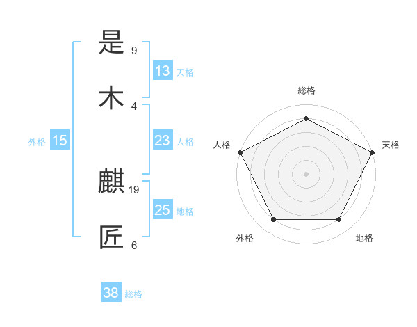 是木 麒匠さんの総格は38画の4点!