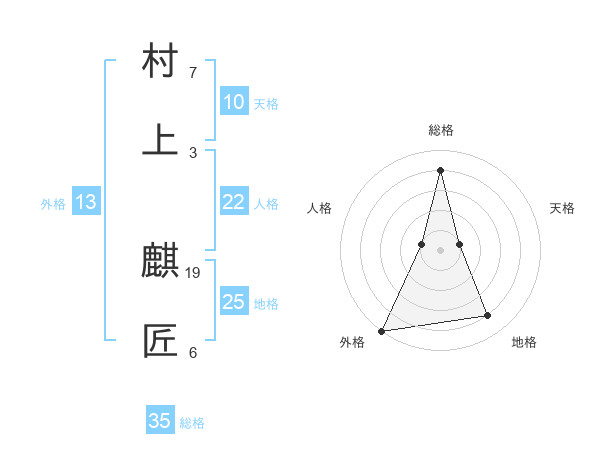 村上 麒匠さんの総格は35画の4点!
