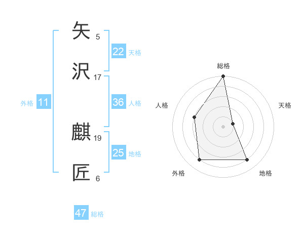 矢沢 麒匠さんを姓名の画数から五運を鑑定