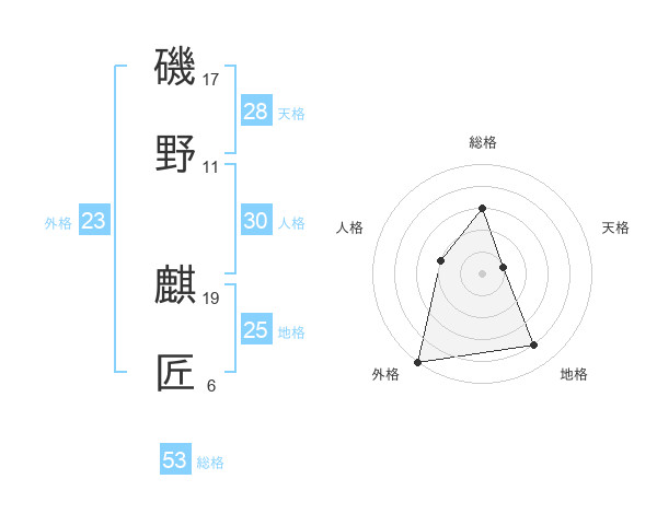 磯野 麒匠さんの総格は53画の3点!
