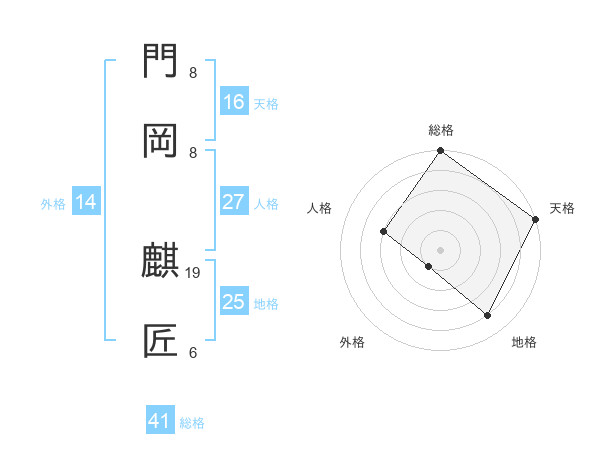 門岡 麒匠さんの総格は41画の5点!
