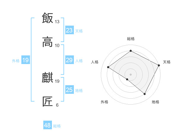 飯高 麒匠さんを姓名の画数から五運を鑑定