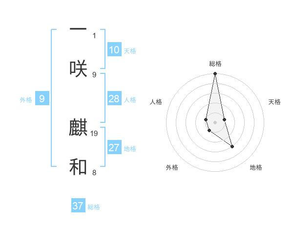 一咲 麒和さんを姓名の画数から五運を鑑定
