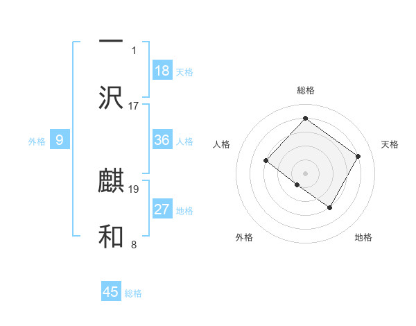 一沢 麒和さんの総格は45画の4点!