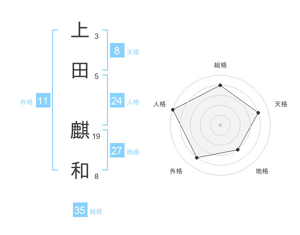 上田 麒和さんの総格は35画の4点