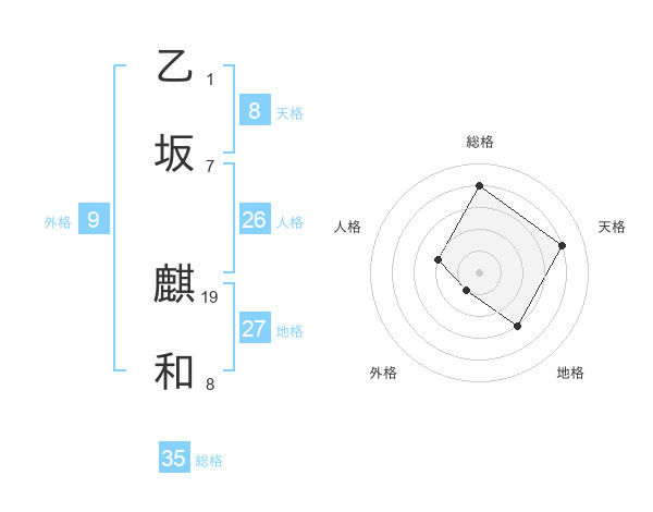乙坂 麒和さんを姓名の画数から五運を鑑定