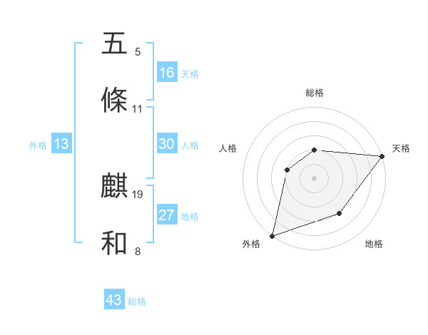 五條 麒和さんの外格は13画の5点!