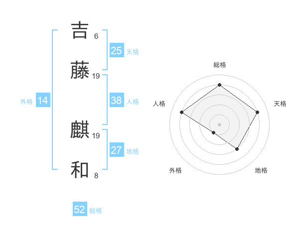 吉藤 麒和さんを姓名の画数から五運を鑑定
