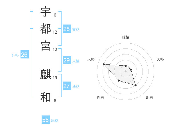 宇都宮 麒和さんを姓名の画数から五運を鑑定