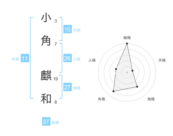 小角 麒和さんの総格は37画の5点!