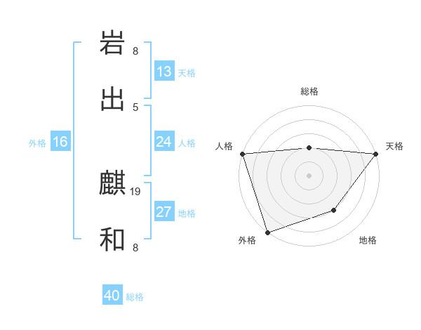 岩出 麒和さんの総格は40画の2点!