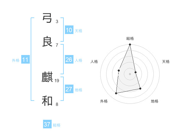 弓良 麒和さんを姓名の画数から五運を鑑定