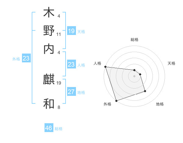 木野内 麒和さんを姓名の画数から五運を鑑定