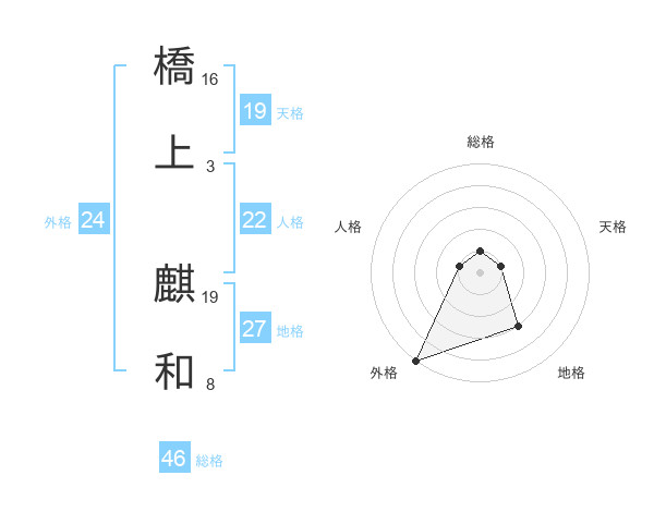 橋上 麒和さんを姓名の画数から五運を鑑定