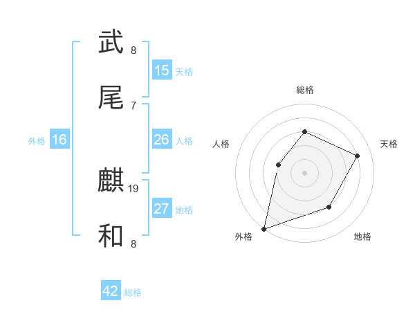 武尾 麒和さんの総格は42画の3点!