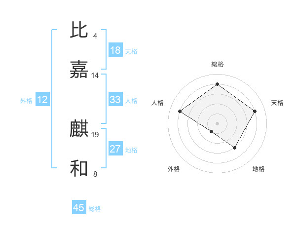 比嘉 麒和さんの総格は45画の4点!