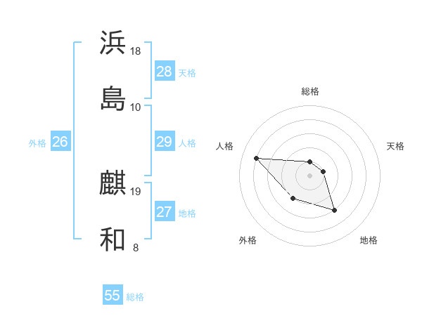浜島 麒和さんを姓名の画数から五運を鑑定