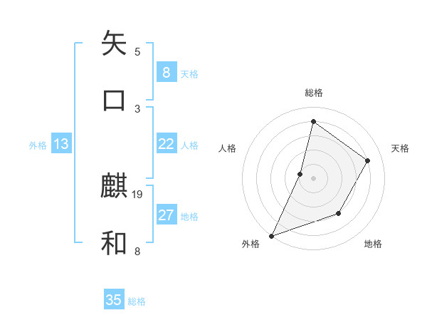 矢口 麒和さんを姓名の画数から五運を鑑定