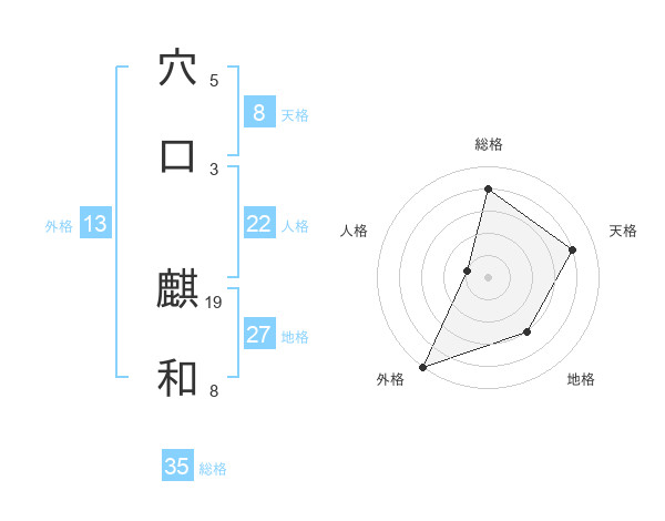 穴口 麒和さんの総格は35画の4点!