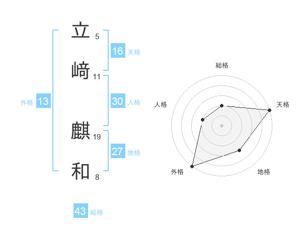 立﨑 麒和さんを姓名の画数から五運を鑑定
