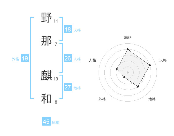 野那 麒和さんの総格は45画の4点!