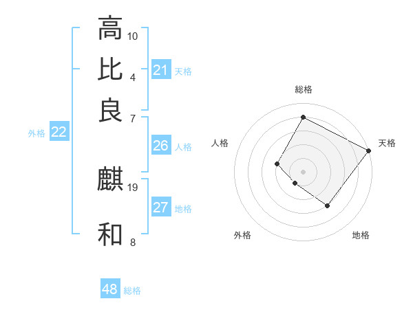 高比良 麒和さんの外格は22画の1点