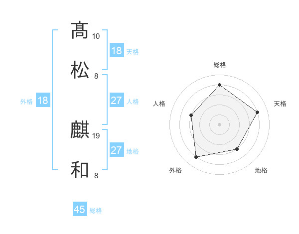 髙松 麒和さんを姓名の画数から五運を鑑定