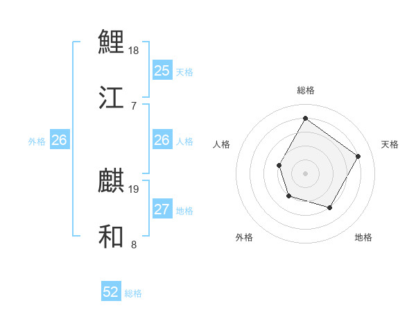 鯉江 麒和さんを姓名の画数から五運を鑑定