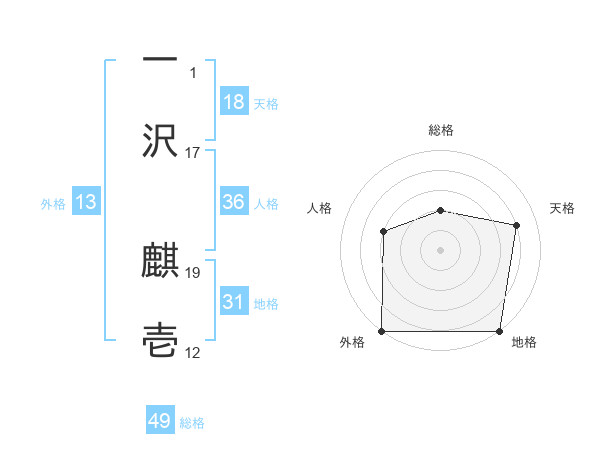 一沢 麒壱さんの外格は13画の5点!