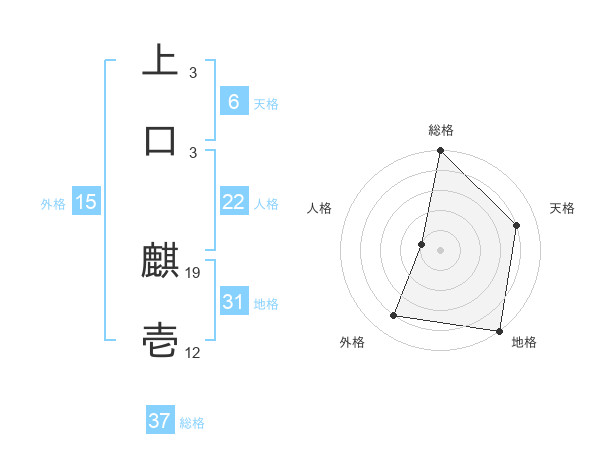 上口 麒壱さんの総格は37画の5点!