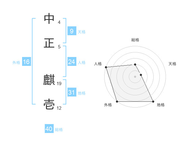 中正 麒壱さんの人格は24画の5点!