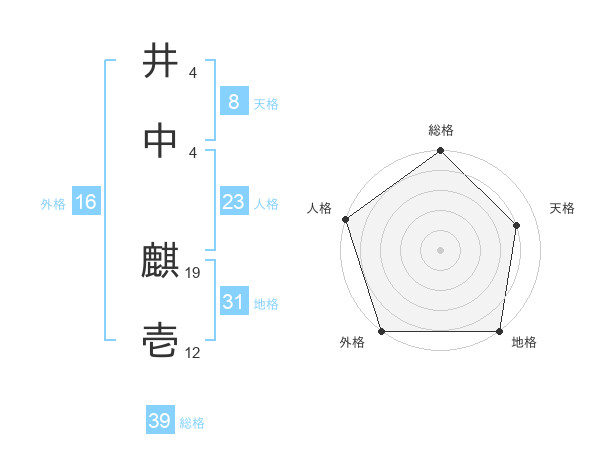 井中 麒壱さんの総格は39画の5点!