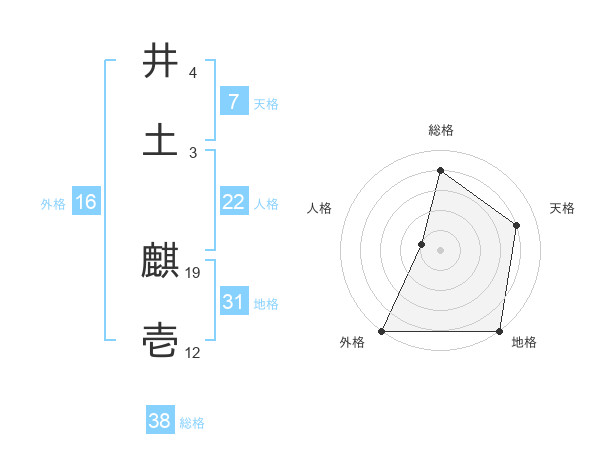 井土 麒壱さんの総格は38画の4点!