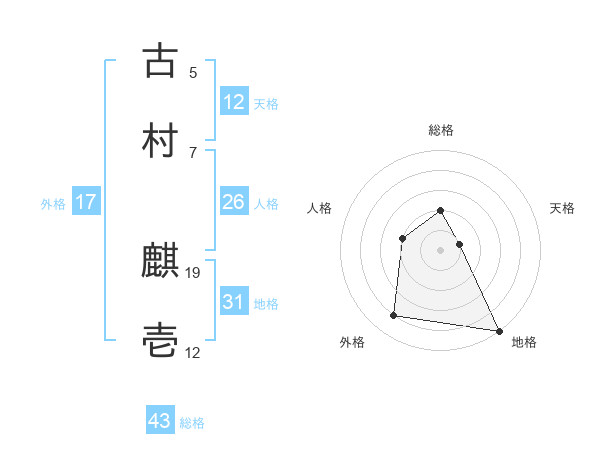古村 麒壱さんの総格は43画の2点!
