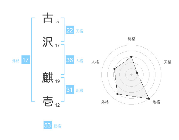 古沢 麒壱さんの総格は53画の3点!