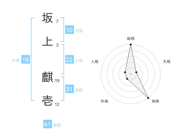 坂上 麒壱さんを姓名の画数から五運を鑑定