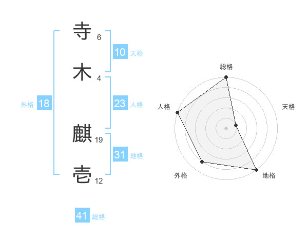 寺木 麒壱さんを姓名の画数から五運を鑑定