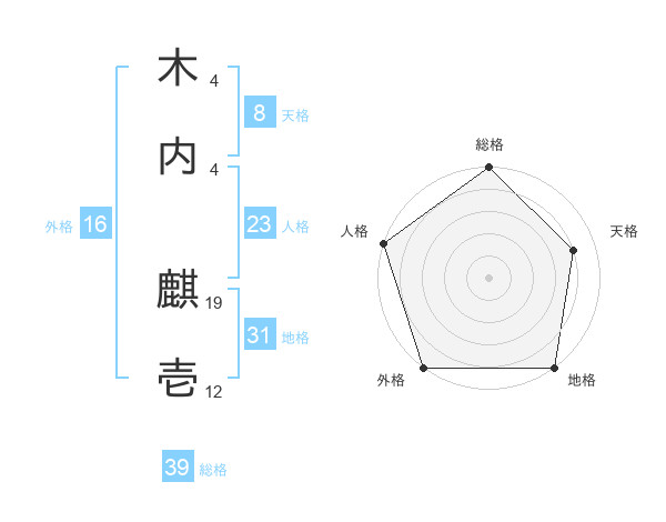 木内 麒壱さんの総格は39画の5点!