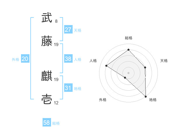 武藤 麒壱さんの総格は58画の4点!