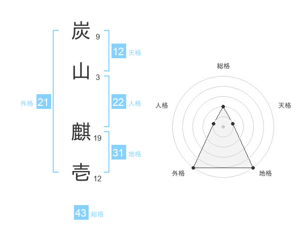 炭山 麒壱さんを姓名の画数から五運を鑑定