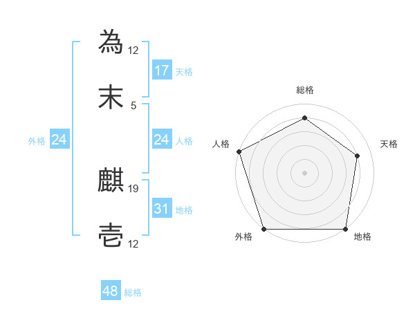 為末 麒壱さんの外格は24画の5点!