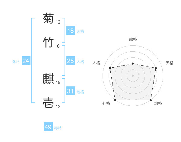 菊竹 麒壱さんを姓名の画数から五運を鑑定