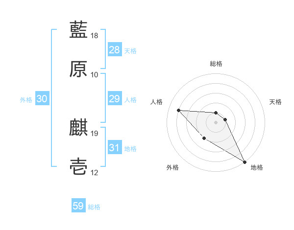 藍原 麒壱さんを姓名の画数から五運を鑑定