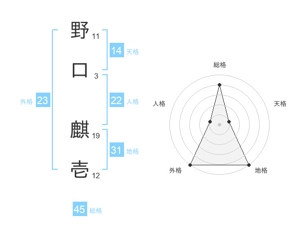 野口 麒壱さんを姓名の画数から五運を鑑定