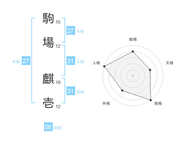 駒場 麒壱さんを姓名の画数から五運を鑑定