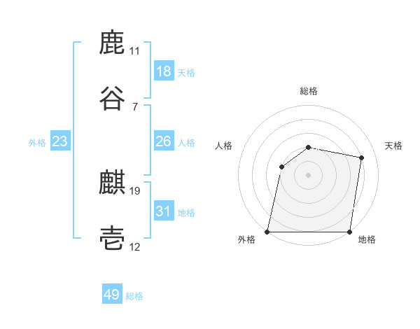鹿谷 麒壱さんを姓名の画数から五運を鑑定