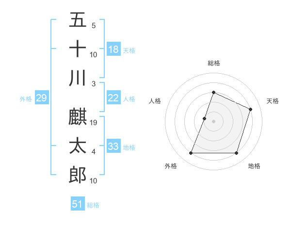 五十川 麒太郎さんの総格は51画の3点!